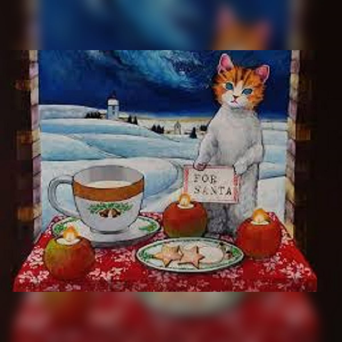 ねこちゃんがおいしいミルクとクッキーで、歓迎の準備をしています♫