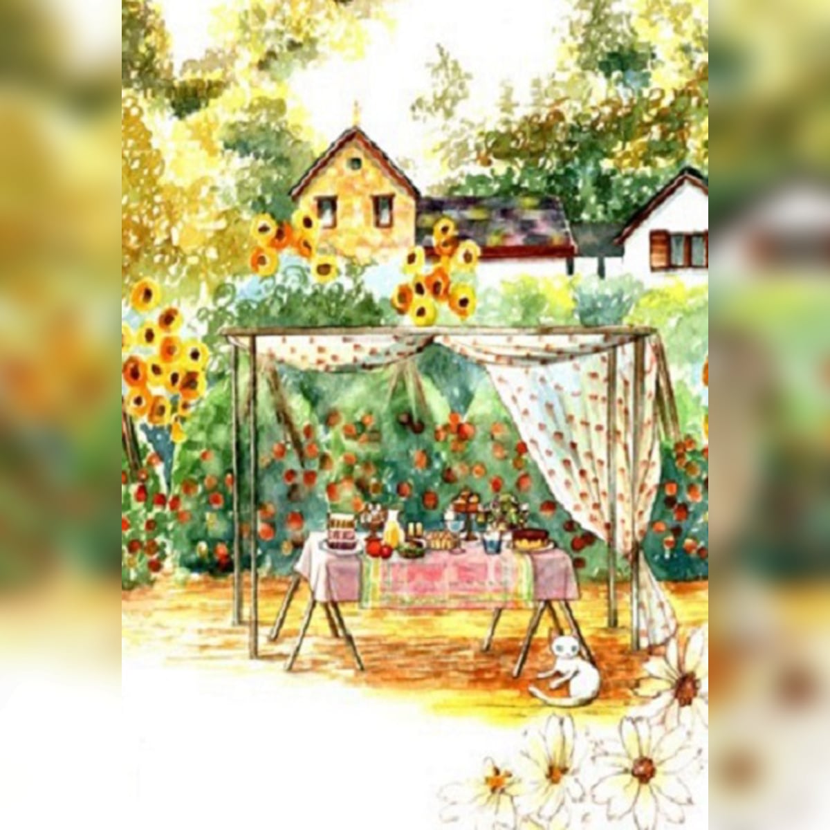 【China】A3s tei-054『菜園のガーデンパーティ』塚本禎子のダイヤモンドアートキット❀