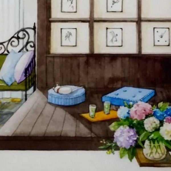 【China】tei-108 40×40cm 四角 雨の午後もお昼寝 塚本禎子のダイヤモンドアート
