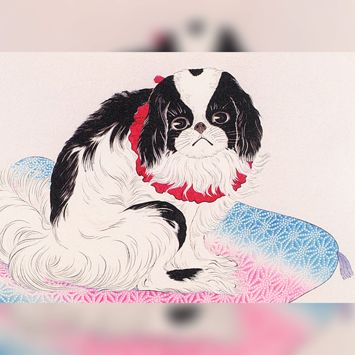 【China】A3サイズ・丸型 mei-32『無題(狆)』名画 高橋松亭のダイヤモンドアートキット